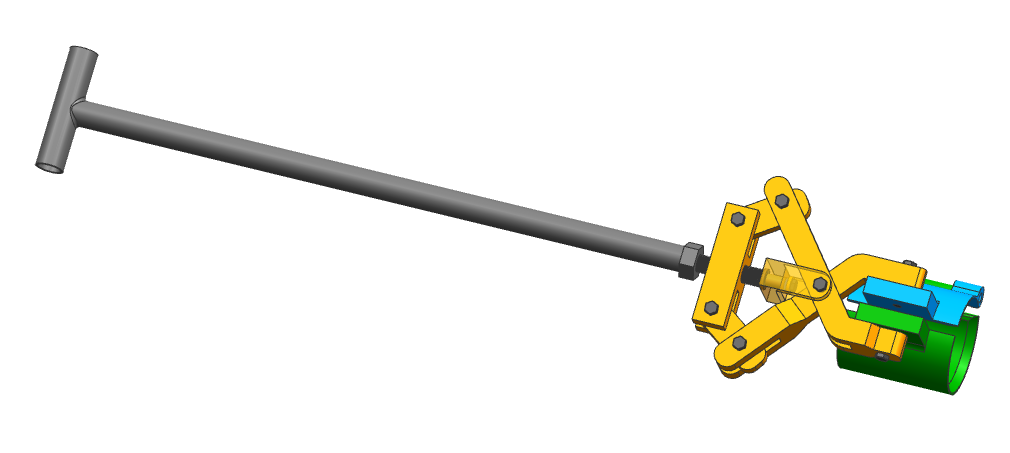 针对问题点,一款小巧实用的落辊工具的图纸在谢俊君的努力下应运而出,工具在设计时充分考虑小巧轻便、夹持力强、快速夹紧松开、在拖拽过程中能将部分拉力转化为夹持力等因素。经努力攻关,手持式抓辊器于2023年2月投入使用,使落辊处理提升了10分钟以上,劳动强度降低,安全性提升。经申请,该小工具获国家实用新型专利。