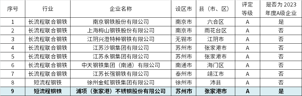 从《公示》中获悉,包括浦项(张家港)不锈钢股份有限公司(简称PZSS)在内的9家钢企为重污染天气重点行业绩效评价A级企业。