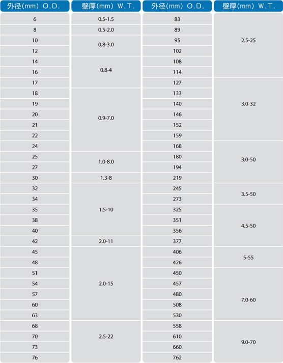 产品尺寸:不锈钢圆管:外径6mm-762mm